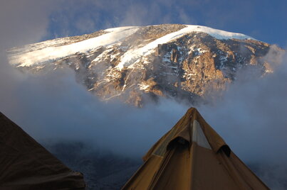 7. Tag: Aufbruch zum Kilimanjaro, 5895 m, dem "Dach Afrikas". Zunächst fahren Sie vorbei an Kaffee- und Bananenplantagen zum Startpunkt am Umbwe Gate, 1640 m. Über einen schmalen Pfad entlang eines Bergrückens erreichen Sie am späten Nachmittag mit dem Umbwe Cave Camp das erste Zeltlager in 2930 Meter Höhe (ca. 5h).